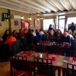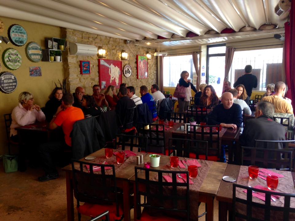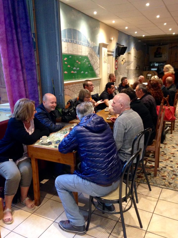 Direction le bar pour un petit déjeuner où nous accueille un patron passionné d’autos et de rallye avec des parties d’Alpine qui décorent son bar.
