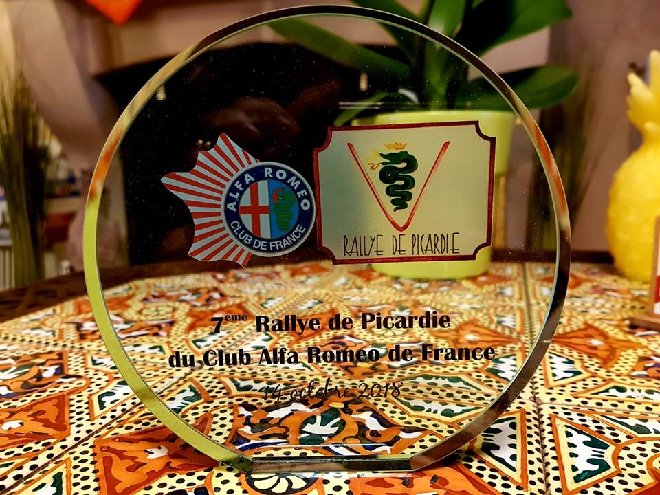 En 3ème position est arrivé l’équipage de Romain, en GTV 916 2L TS, un équipage débutant mais très efficace ! Ils sont repartis avec un trophée en verre portant les logos du Club Alfa Romeo de France et du Rallye de Picardie, une bouteille de champagne et un poster de l’Alfa Romeo 33 Stradale.