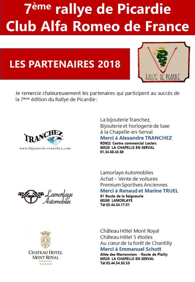 Alexandre Tranchez de la bijouterie Tranchez à la Chapelle-en-Serval,                      Le château Mont Royal Chantilly à la Chapelle-en-Serval,               Renaud et Marine Truel de Lamorlaye Automobiles qui nous ont accompagnés une seconde fois.                Et merci à ma maman, grâce à sa région natale, le rallye de Picardie a connu ses plus beaux parcours.
