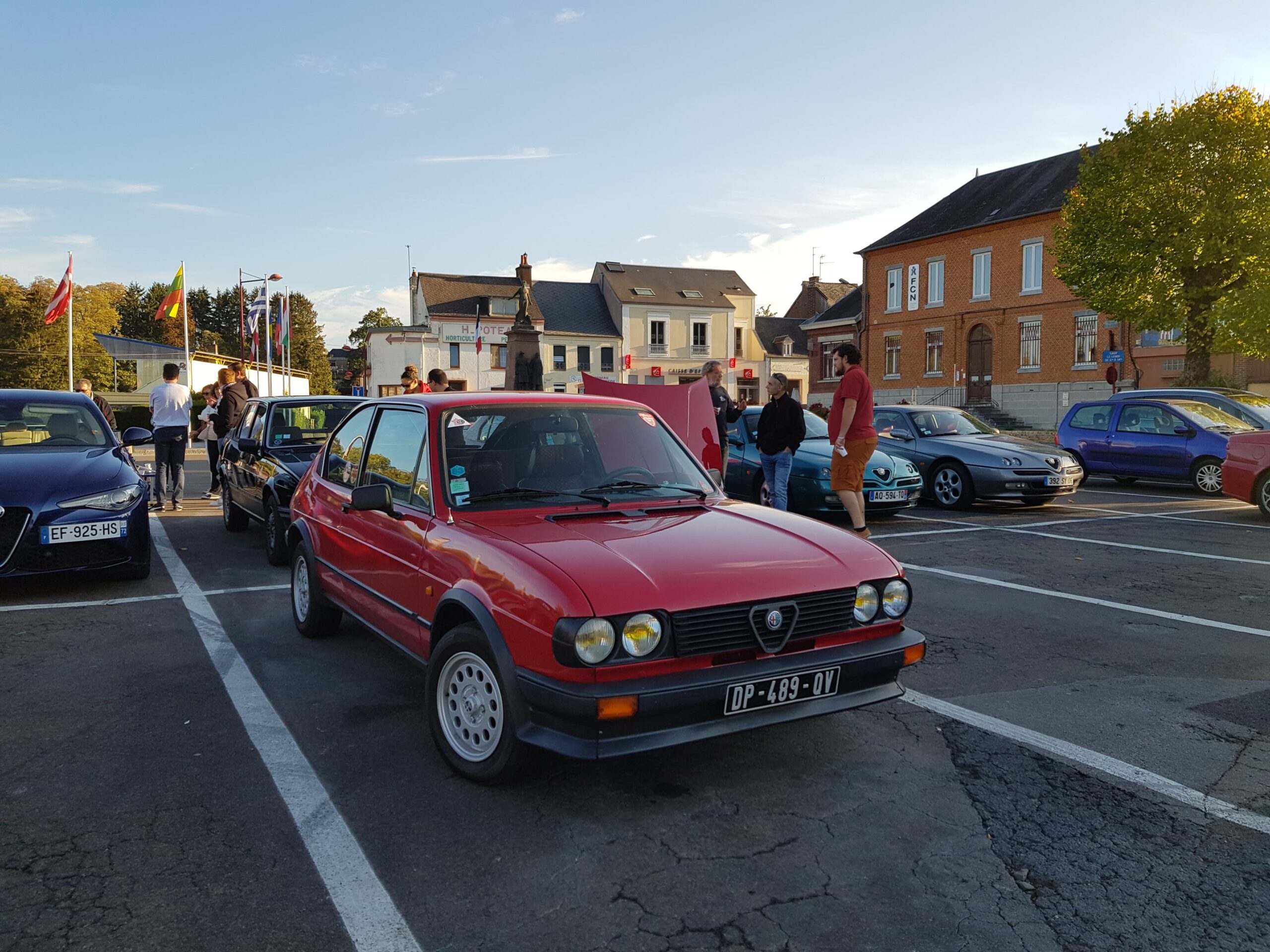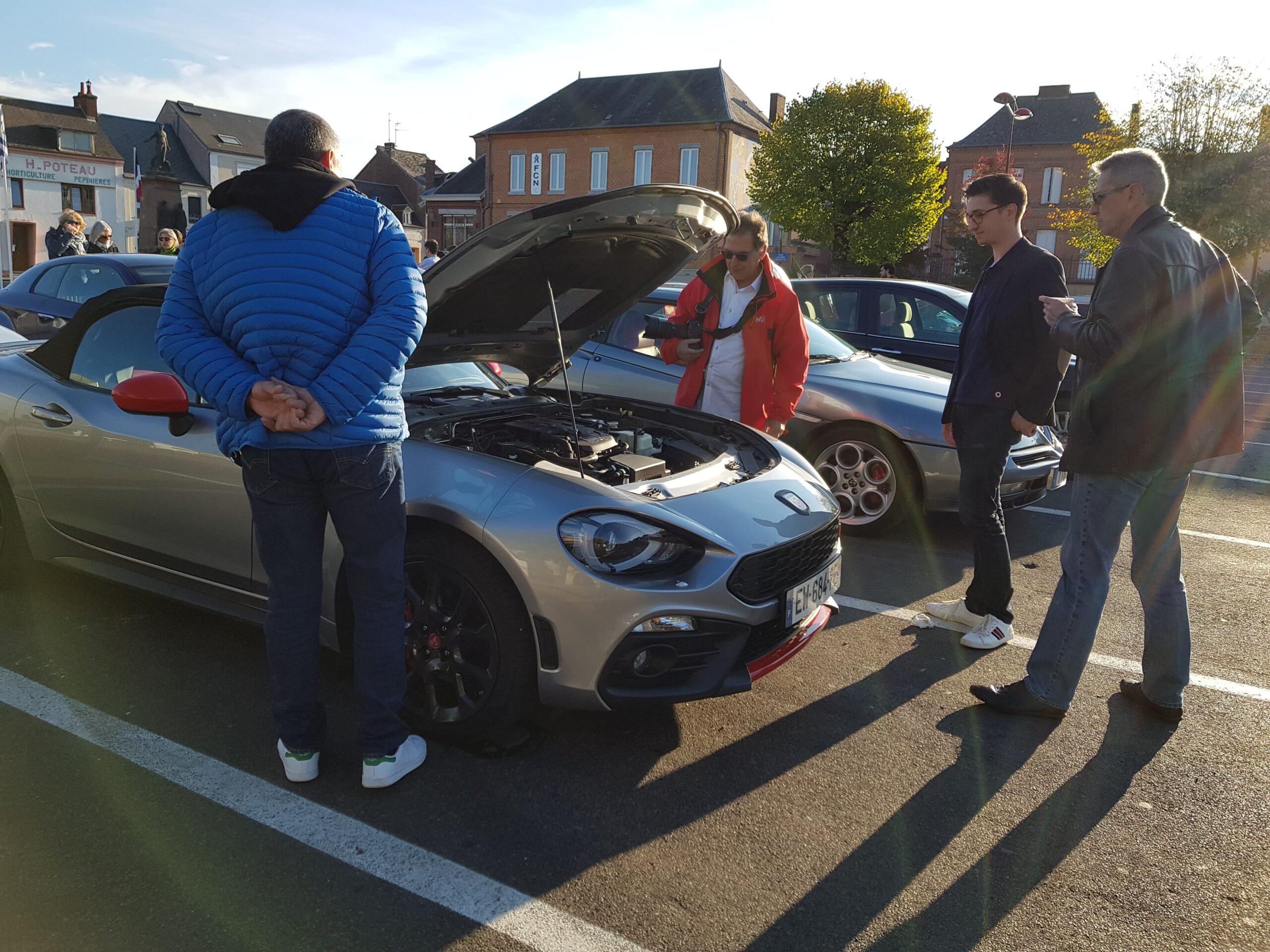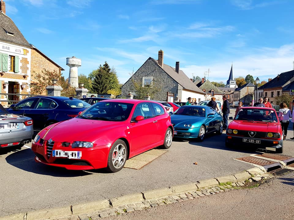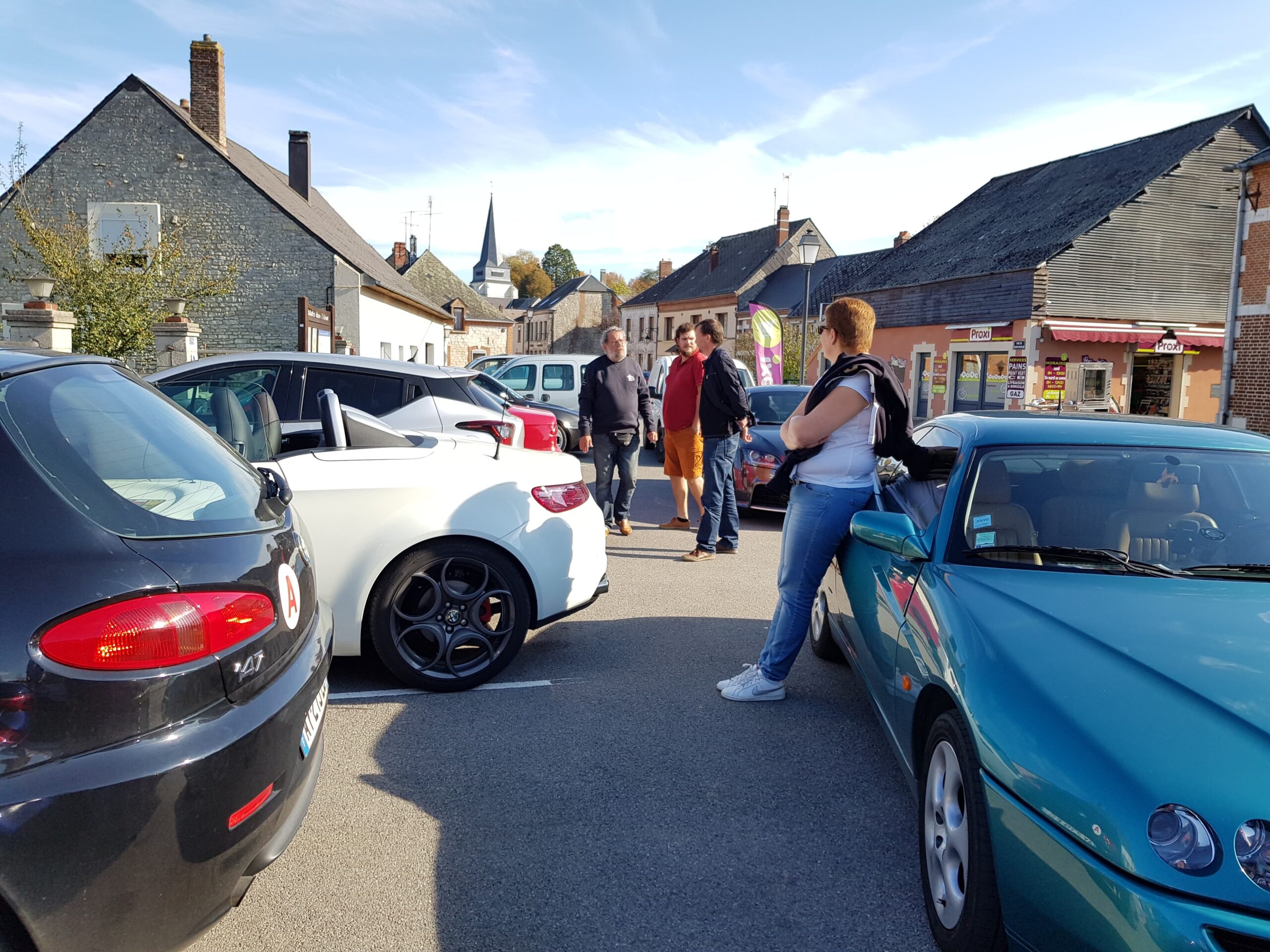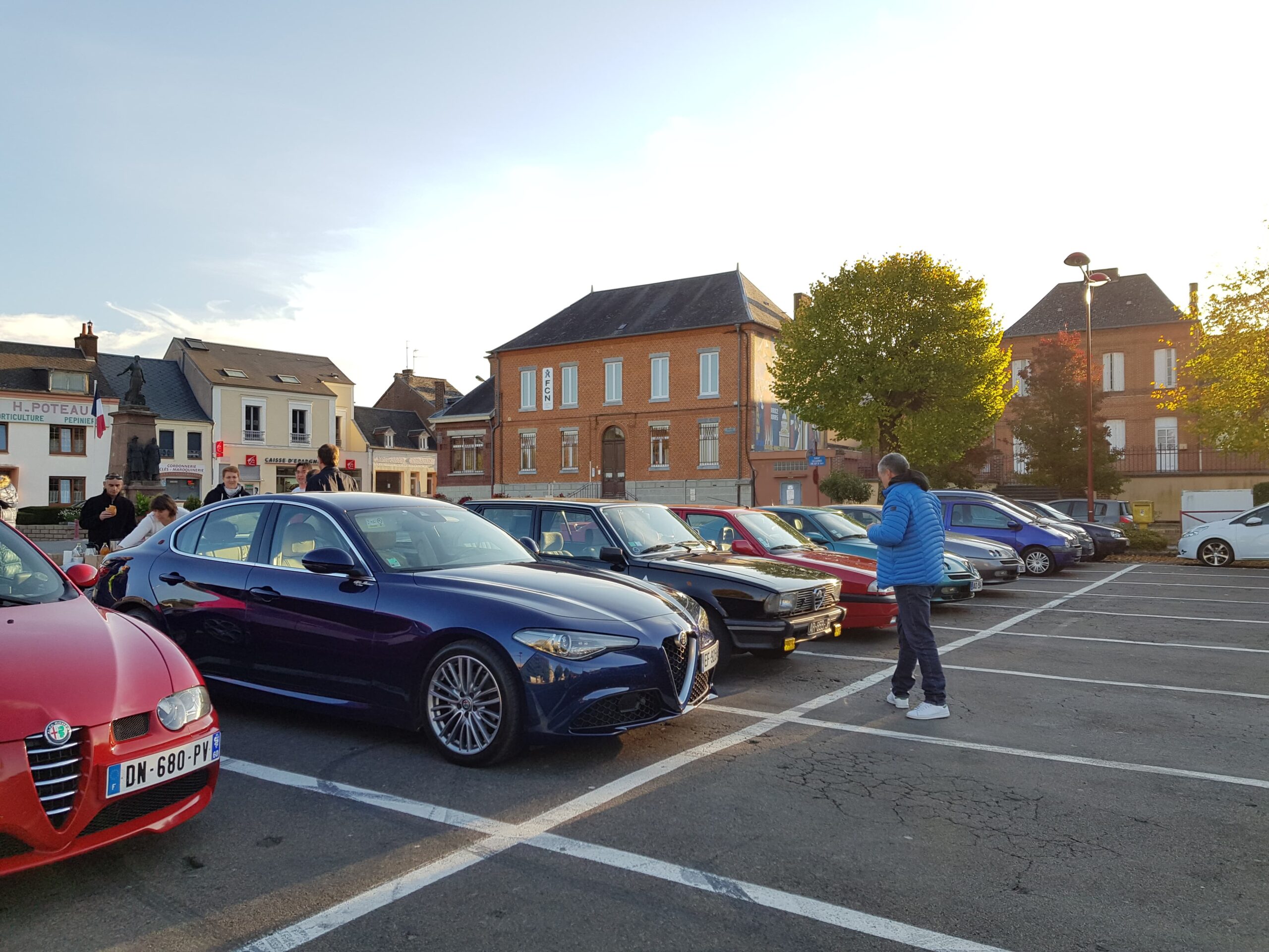 9h00, place Victor Hugo à Hirson : les Alfa arrivent les unes après les autres, à une belle exception près : un spider 124 Abarth fait partie de l’édition cette année. Les belles cousines italiennes sont les bienvenues lors du rallye de Picardie. Je regrette d’ailleurs que Denis n’ait pas pu venir avec son A112 Abarth (caprice mécanique…).
