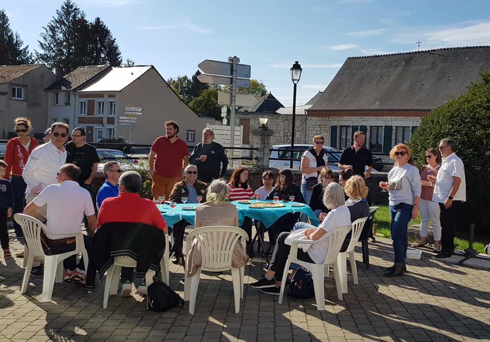 A l’issue de cette première étape, il est temps de faire une petite halte au restaurant la Table de Maya à Aubenton. Petit kir en terrasse pour tout le monde, le soleil était bien là, comme à chaque édition ! Certains auront tenté une spécialité de la région : filet mignon aux maroilles !