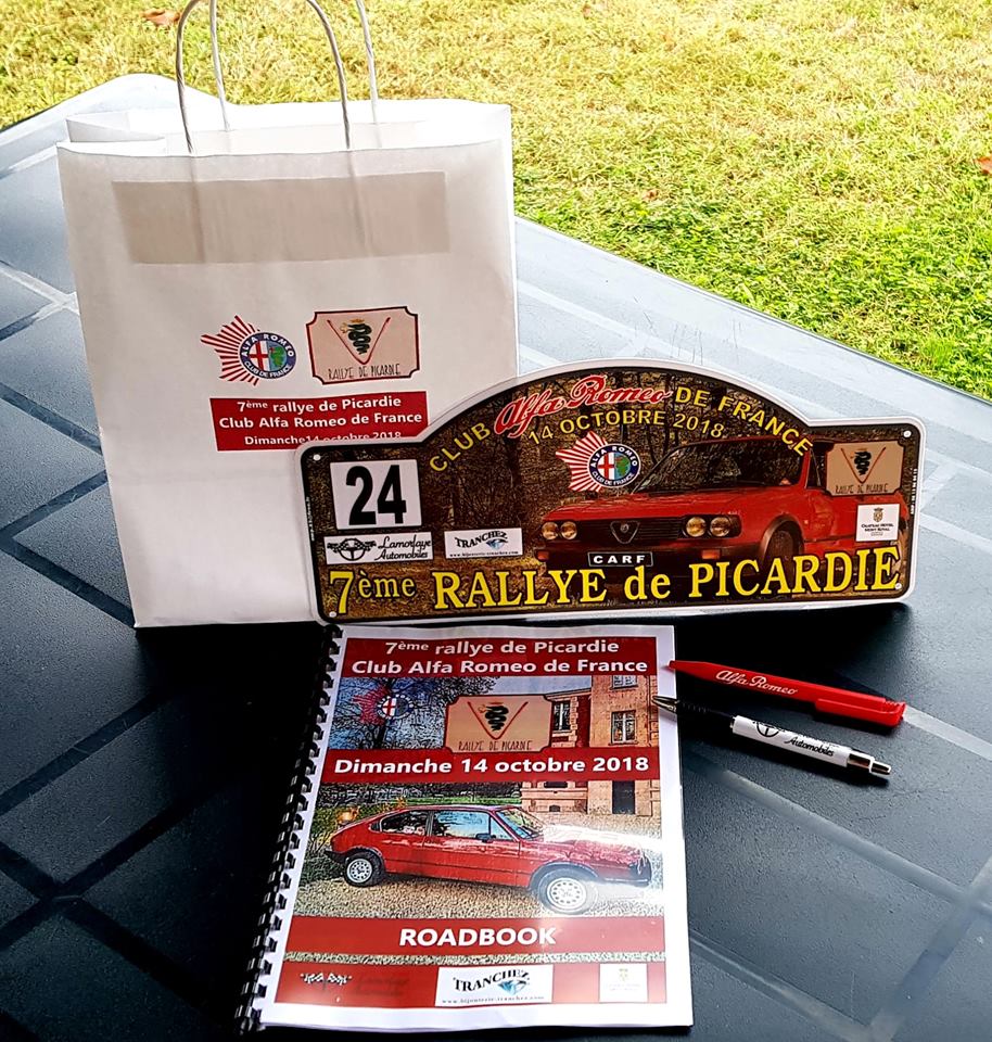 D’ailleurs la Thiérache, c’est le sujet du jour ! Chaque équipage se voit remettre un petit package : sac à l’effigie du Rallye de Picardie, roadbook comprenant les deux parcours, les questionnaires et deux stylos (merci à Benoît « Le Mans » pour les stylos Alfa Romeo et à Renaud et Marine pour les stylos Lamorlaye Automobiles).